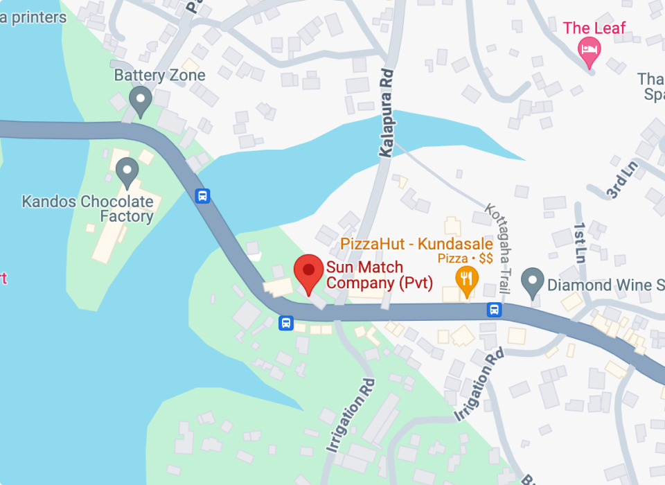 Sun Match Company (Pvt) Ltd, Bamunupolawatte, Kundasale, Kandy, Sri Lanka.